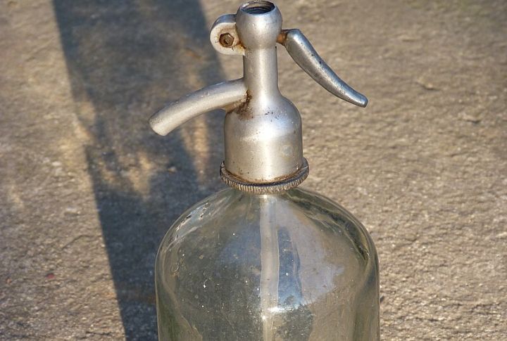 People didn’t always have fizzy drinks available everywhere. Some made their own with soda siphons. These wire-covered glass bottles used CO₂ cartridges to instantly carbonate plain water. Just press the lever and instantly—sparkling water for homemade sodas and cocktails whenever you want them.