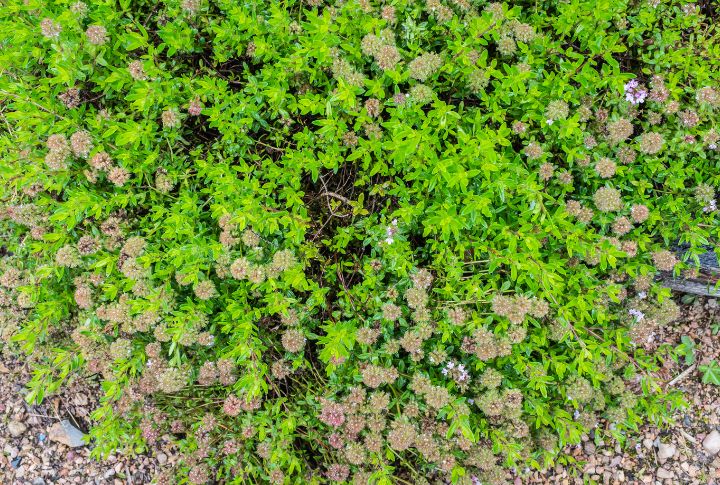 Battling weeds in moist, shaded garden crevices? Corsican mint offers a fragrant solution. It develops a thick green mat that spreads easily in quiet corners, perfect for covering spaces between stones. Plus, a refreshing aromatic burst of mint is released into the air every time it’s brushed or stepped upon.